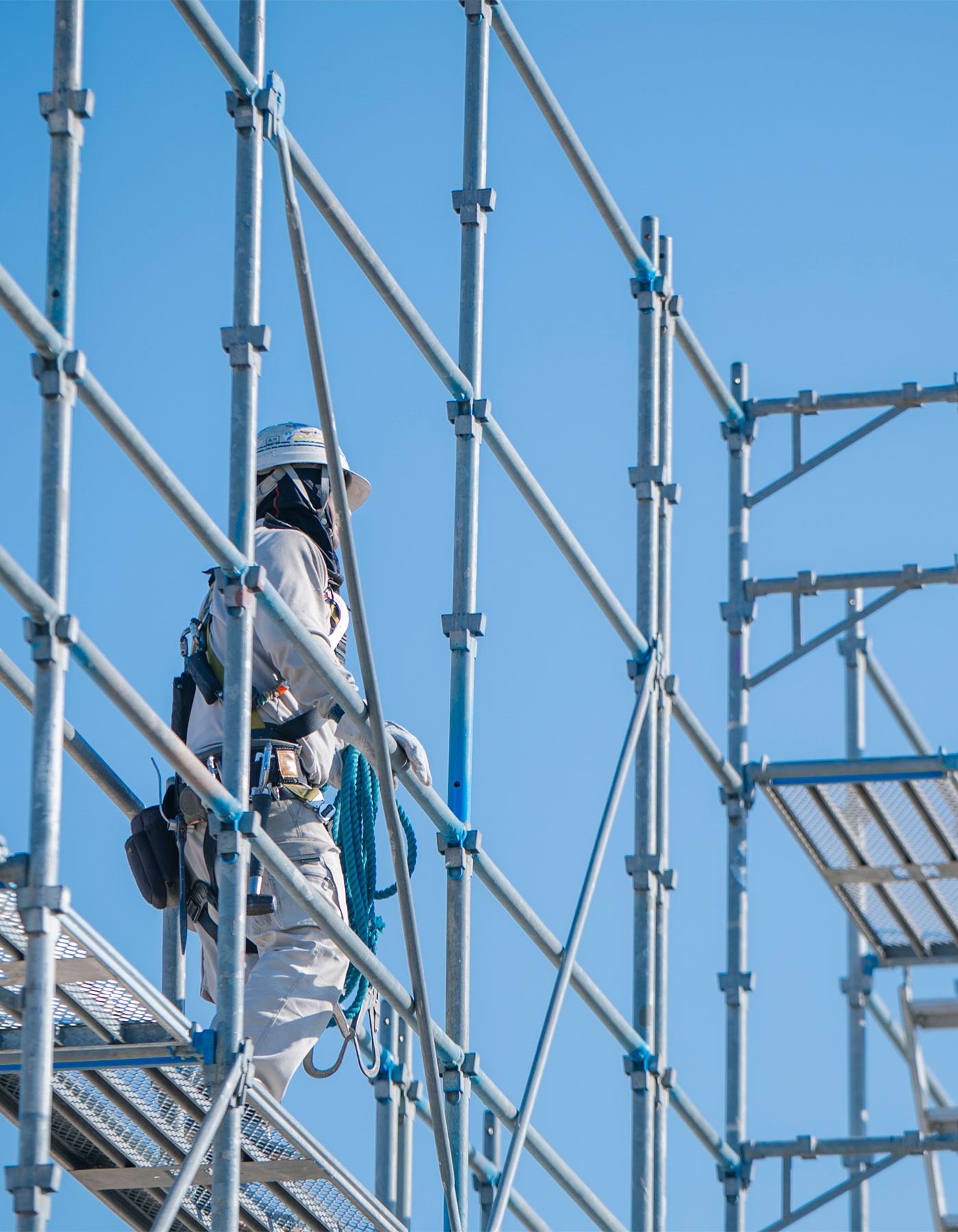 足場工事とは、建設現場など高所で作業員が作業をする際に、足元を支える構造物を設置する工事のこと。作業を安全かつスムーズに進めるために欠かせないものです。足場職人はとび職のひとつであり、建設現場の足場の組み立てや解体などを専門に行います。
